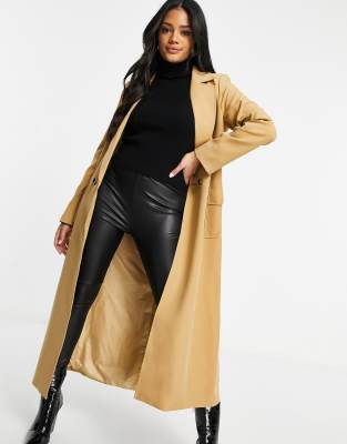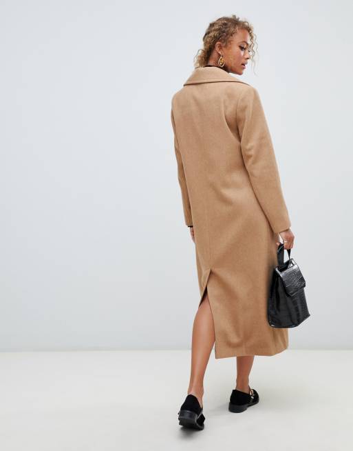 Miss Selfridge Tailored Maxi Coat In Camel / Petite coat by miss selfridge seriously strokable point collar button placket functional pockets.