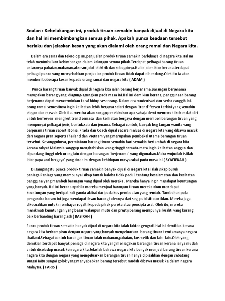 · sifat perniagaan amat menguntungkan. Kestabilan dan kemakmuran negara kita sejarah tingkatan 3; Kesan perkembangan sistem pendidikan di malaysia; Hal ini kerana barang cetak rompak dapat memenuhi cita rasa pengguna yang kurang mampu. Pun begitu, masih ramai pengguna di malaysia berdegil apabila terus menjadi 'hamba' barangan tiruan meskipun menyedari pelbagai risiko menanti.